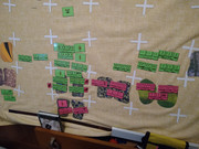 Markers laid down as per rules. Items re-rolled for new location. If locations already occupied or 6 rolled on second dice item remains in place.  This left the field of battle as