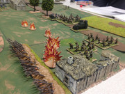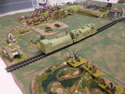 Had a practice game at the Keynes last night against Nick O. Sorry about the fuzzy overall shot. Other shots are the fights for the manor house and grassy knoll. Did wonder if you could move into a point barrage and if a voluntary withdrawal from an assault had to be towards the base edge and not away from the assault. Looking forward to the day. I think I need to use less cavalry.