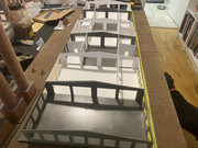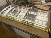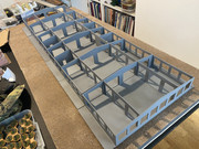 Made 6 modules today and just placed them inside the components made this morning (waiting in more foam to finish the 3 new sections) and placed on a 4' wide board to get a better impression. At least another 6 drop in modules to be made up and then it all needs to get (re)painted with plastic primer once the windows have all been added.
