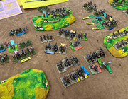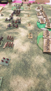 A few pictures from my first game: my 1990s Essex Miniatures Late Roman force against Ben's very nice 3D-printed Gauls.